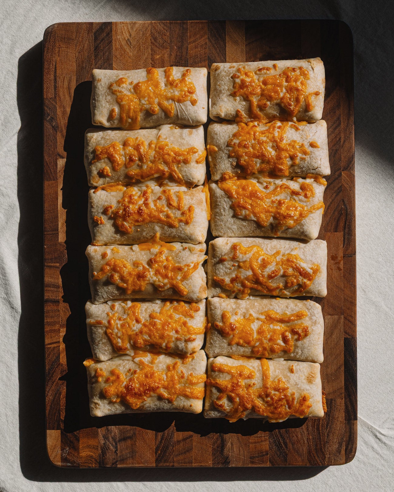 Made-from-scratch whole beans, Monterey Jack Cheese, house-made red salsa, wrapped in a fresh-baked tortilla and topped with more cheese.